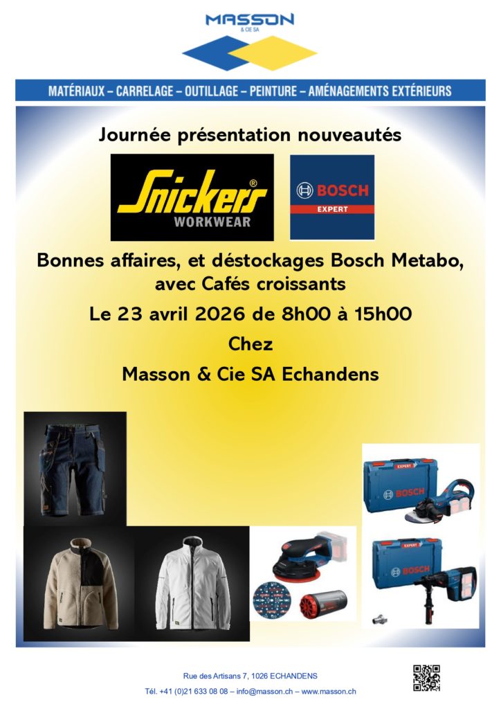 Masson & Cie SA est une entreprise familiale spécialisée dans le commerce et le conseil des matériaux de construction, carrelages, aménagements extérieurs et des produits pour le bâtiment.